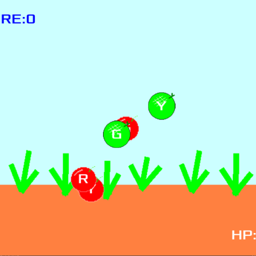 流れてくるオブジェクトの色と、文字が一致している時にクリックすることで得点となり、そうでないオブジェクトをクリックしてしまうとダメージを受けます。