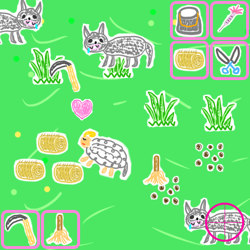 ハサミ:羊毛を刈り取ります。スコアアップが狙えます。