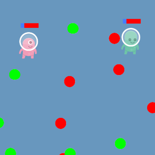 赤色のキャラクターと緑色のキャラクターそれぞれ操作方法が異なります。