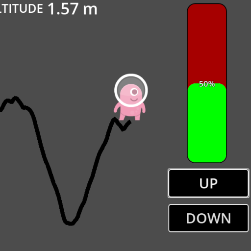 UPボタンやDOWNボタンでキャラクターが次止まる場所が今より高い位置にいるか低い位置にいるかを予想します。